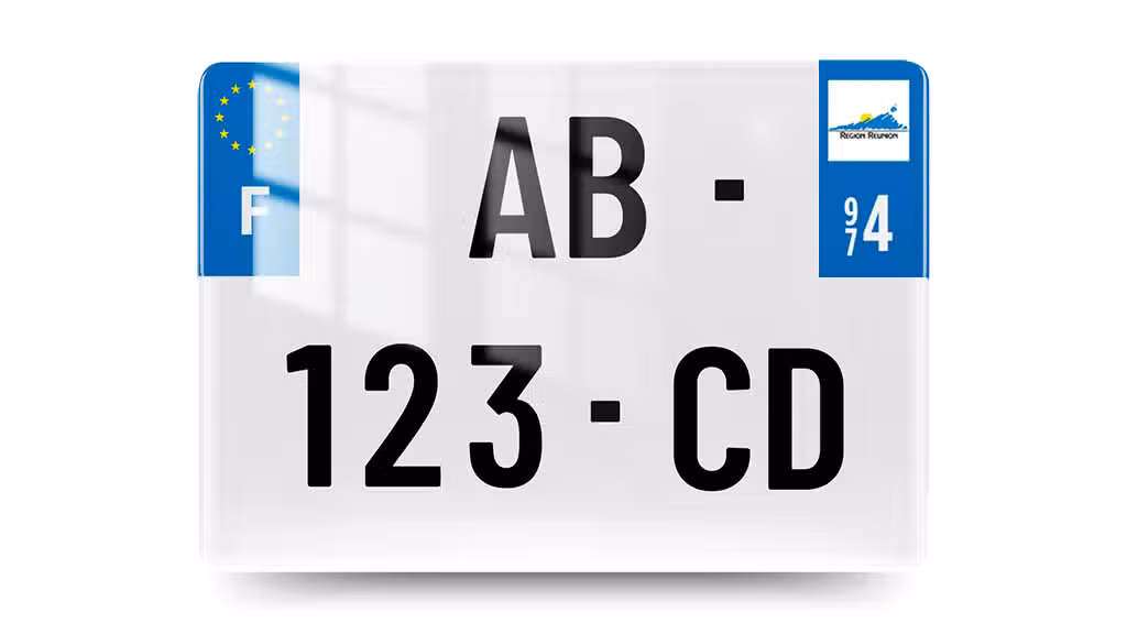 Achetez votre plaque immatriculation carrée pour La Réunion (974) n ligne ! Nos plaques sont au format réglementaire 275x200m. 100% conformes. Fabrication sous 24H avec finitions soignées. Multiples options de personnalisation. Livraison dès 4,50€. Matériaux de qualité premium : PET Recyclable Moulé, Plexiglas (PMMA).
